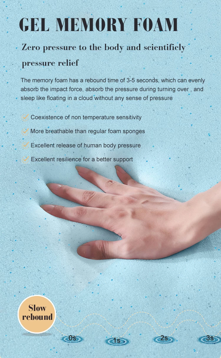 3cm gel memory foam, 4cm softer memory foam and 18cm high density base foam.