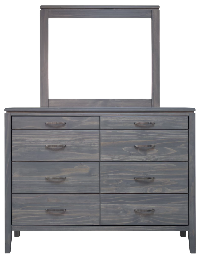 Robina Bedroom Suite contains a storage or non-storage bed in any size of your choice with a nightstand, 8 drawers dresser and a mirror.