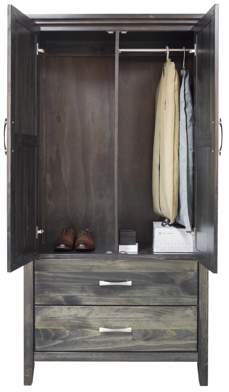 Scarlett Armoire with 2 Doors and 2 Drawers + Hanging Rod + 1 Shelf (Full Extension Glides).